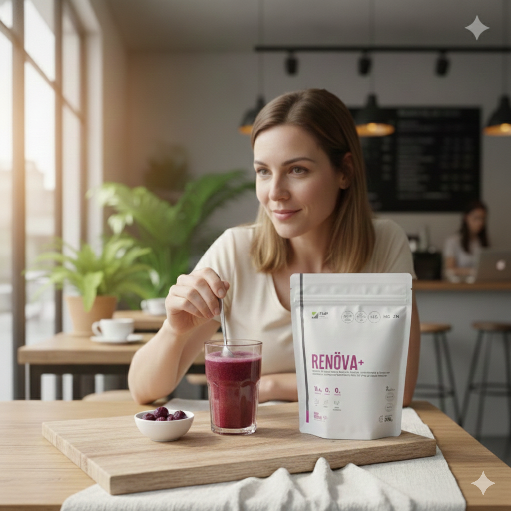 RENOVA+ combina biopéptidos activos con antioxidantes y cofactores clave, logrando mayor absorción y resultados visibles.